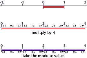 Mapping 0 - 1 to 0 - 1 - 0The diagram below shows the original range, 0 to 1, being mapped to the range 0 to 1 to 0.