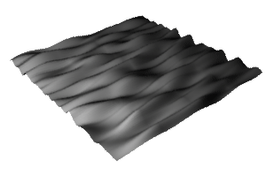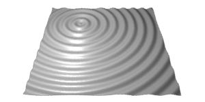 Ripples in a pool of water, say as the result of a drop of rain, normally propogate outward as 2 or 3 concentric waves. Listing 12b applies a constraint on the ripples seen in figure 20 in order to mimic the rain-drop effect. The constraint is based on a double use of the smoothstep() function. For more information about this RSL function refer to the tutorial "RSL: Using smoothstep". Listing 12b